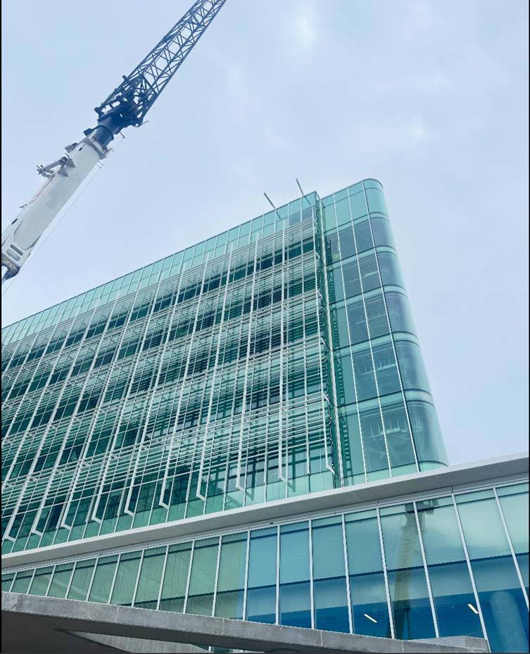 This project features the RT-3 Enhanced Level E and Level D Glass Framing System, pushing the limits of performance and design. The glass panels exceed 60 sq ft in the vertical wall configuration — and to achieve the architect’s concept, we integrated Level E radius glass panels just under 100 sq ft per Glass panel at a design pressure of +125 / −135 psf.